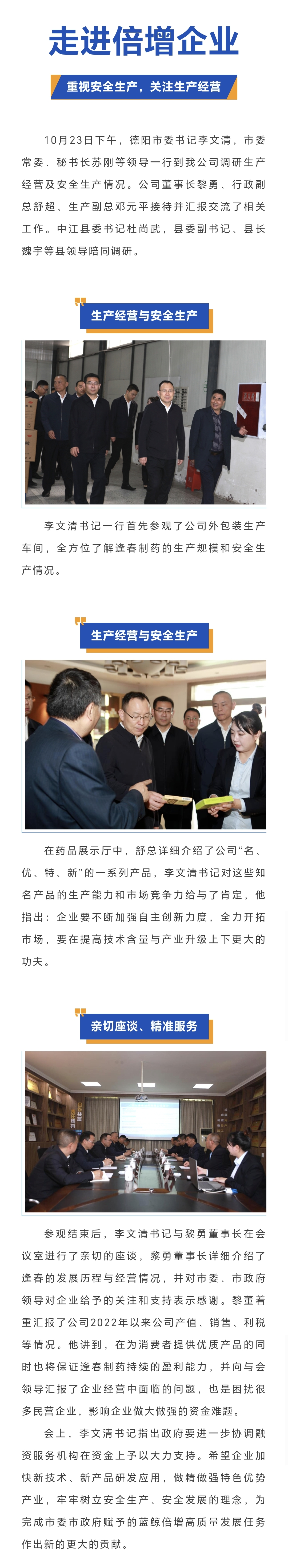 德陽市委書記李文清等領導一行赴逢春調研